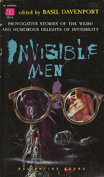 "Love in the Dark" is included in at least three Gold collections as well as some anthologies, including Fred Pohl's Beyond the End of Time, the cover illo of which manages to cram in a multitude of our favorite things: a hunk, a babe, poison gas, a saucer, a space man, and an urban apocalypse, and Basil Davenport's Invisible Men, which has a characteristically awesome Richard Powers cover.