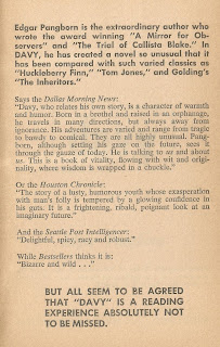 | Ecstatic blurbs from the first page of my copy of Davy |