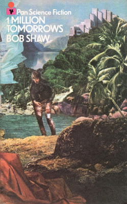 Let's check out another novel by Bob Shaw, this one copywritten 1970. I have the 1986 Panther paperback of One Million Tomorrows, acquired down in South Carolina in the impressive science fiction section of the used bookstore known as Rainy Day Pal.
