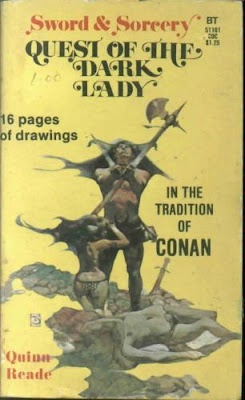 An ably-written, solid adventure story with elements of sexploitation literature and characters representing all the stereotypical gender roles we are not supposed to believe in anymore--I'd definitely recommend it to sword and sorcery fans, aficionados of odd vintage paperbacks, and those studying gender in speculative fiction. Haas wrote two more sword and sorcery capers, those under the pen name Richard Meade, and after experiencing Quest of the Dark Lady, I am definitely interested in reading them.