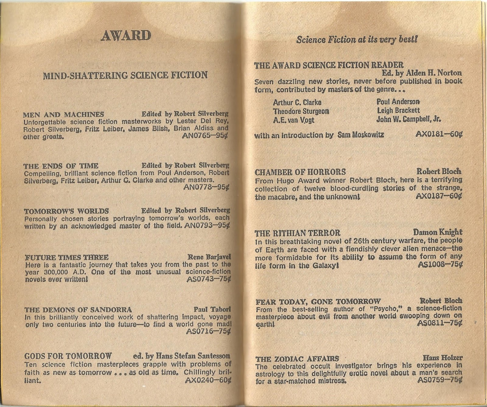 I'm telling you this because I need your love. Just as you need mine, though you don't know it--yet. And because I can't make love to you as a human makes love to a human.As it proceeded I began to think of "Down in the Black Gang" as one of those "modern interpretations of angels" stories, like perennial Christmas favorite It's A Wonderful Life. But later it becomes clear it depicts an exploitative supreme power, not a benevolent one. I guess it is kind of like Damon Knight's "Be My Guest" or John D. MacDonald's Wine of the Dreamers, a story which proposes a supernatural or extraterrestrial source of human misbehavior and unhappiness.