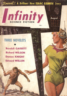 We are witnessing the end of an era! For a year we here at MPorcius Fiction Log have been reading stories published in 1956 that appear on the Honorable Mention list at the end of Judith Merril's SF: The Year's Greatest Science-Fiction and Fantasy: Second Annual Volume. This list is alphabetical, and we started with A, and through 18 blog posts we have read something like 60 stories and made our way all the way to W, the final letter on the list (I guess Merril didn't like any of Robert F. Young's 1956 stories, and it doesn't look like Roger Zelazny published any stories in 1956.) And today we have post number 19 and a final three stories, one by Robert Moore Williams and two by Richard Wilson. (I wanted to read Anthony G. Williamson's "To Reach the Stars," but I can't find a scan of Authentic Science Fiction's May 1956 issue.)