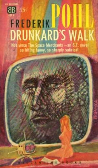 IN MEMORIAM: In the course of reading The Earth Quarter, the dry-as-a-bone glue on my copy of Lancer 74-601 gave up the ghost, with the result that the book fell to pieces. Luckily the front cover, which I adore, is still in good condition, and I didn't lose any of the pages. I have a collection of those clear plastic bags from half-Price Books, and into one I will inter this relic, where it will rest in peace until unearthed by some future generation SF fan, eager to learn the wisdom and enjoy the artistry of Damon Knight (such as it is.)