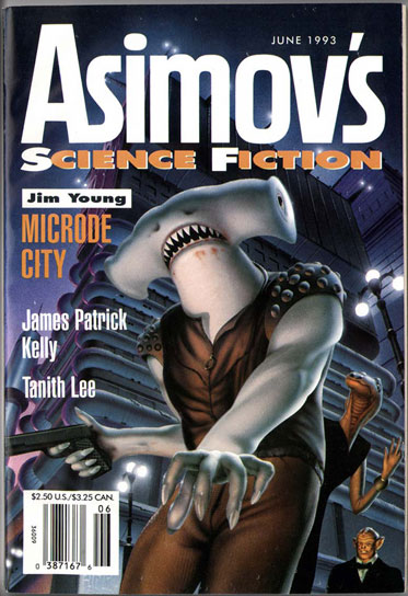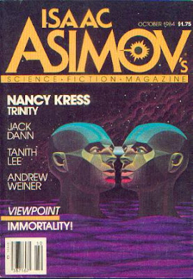 This one first appeared in Asimov's Science Fiction Magazine.  Talk about a lifeless, uninspired cover...zzzzzzz.