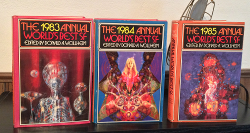 Followers of my twitter feed may recall that I have been buying 1980s hardcover book club editions of Donald A. Wollheim's Annual World's Best SF.  I have been purchasing these largely because of the Richard Powers covers and because many contain stories by Tanith Lee.  (Wollheim was an important champion of Lee's--her breakout novel The Birthgrave, as well as much of her other early work, first appeared in DAW editions.)  This week I cracked open these recently acquired anthologies and read three tales by Lee, one each from 1982, '83 and '84,